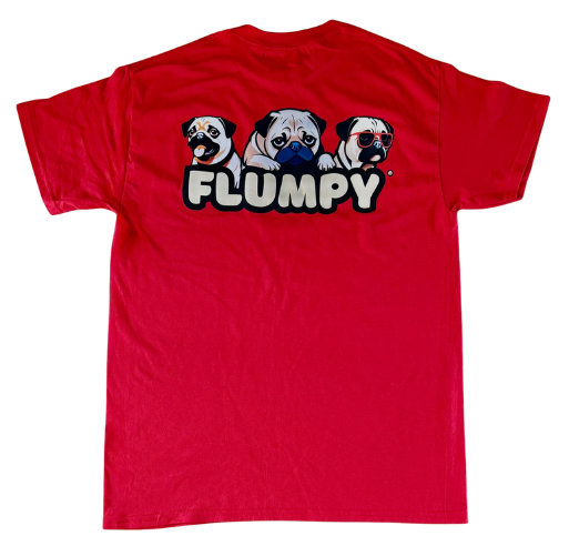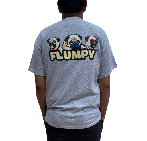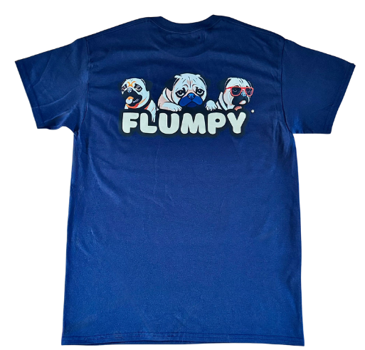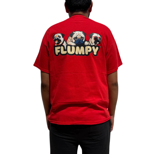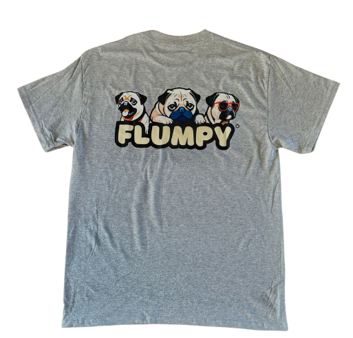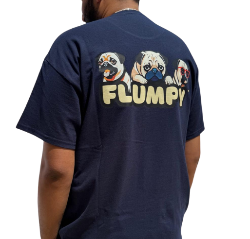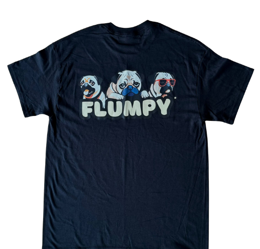 Premium back print of our iconic trio of Flumpy pugs printed boldly on the upper-middle back.
